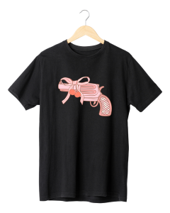 T-Shirt für Schützen mit Aufdruck “Pink Gun” Druck auf der Vorderseite.